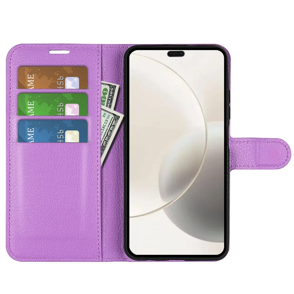 Fialové peňaženkové puzdro Litchi na mobil Honor 400 Smart 5G/4G/Honor X7d