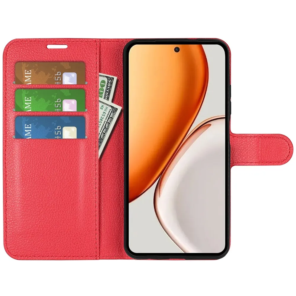 Litchi knižkové puzdro na Honor Magic 8 Lite 5G - červené