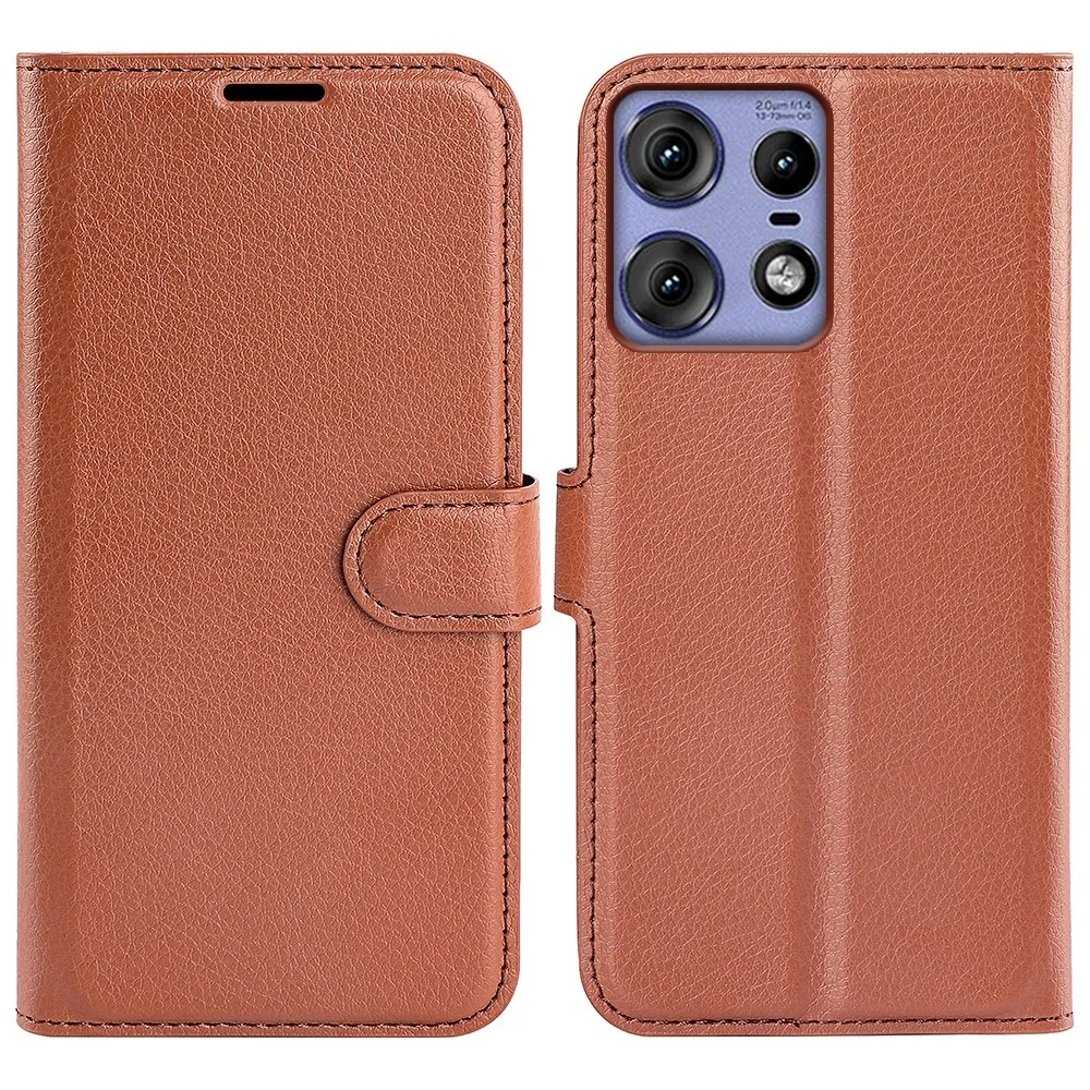 Litchi knižkové púzdro na Motorola Edge 50 Pro 5G - hnedé
