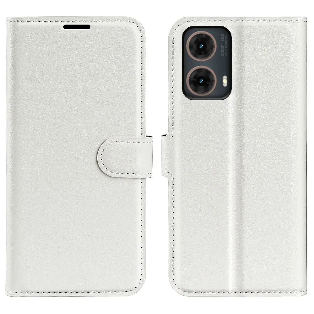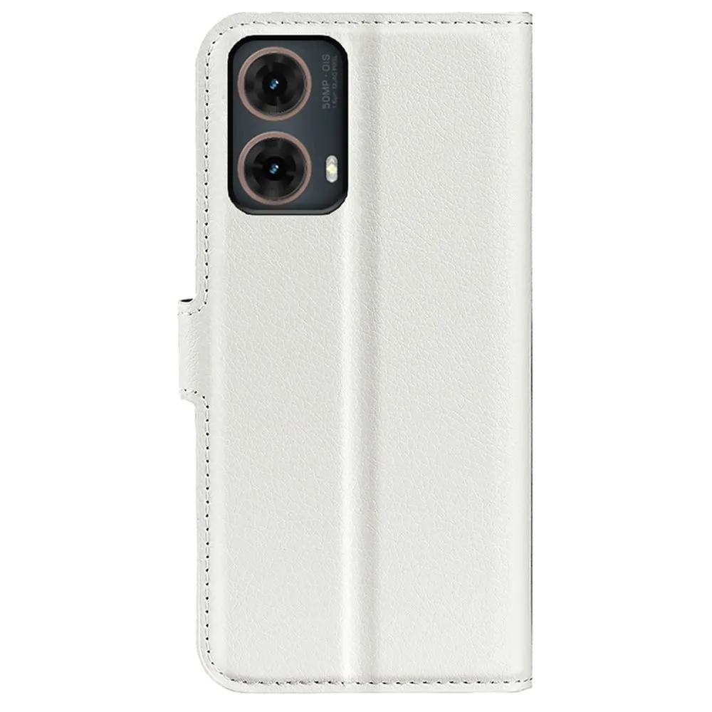 Biele peňaženkové puzdro Litchi na mobil Motorola Moto G85 5G