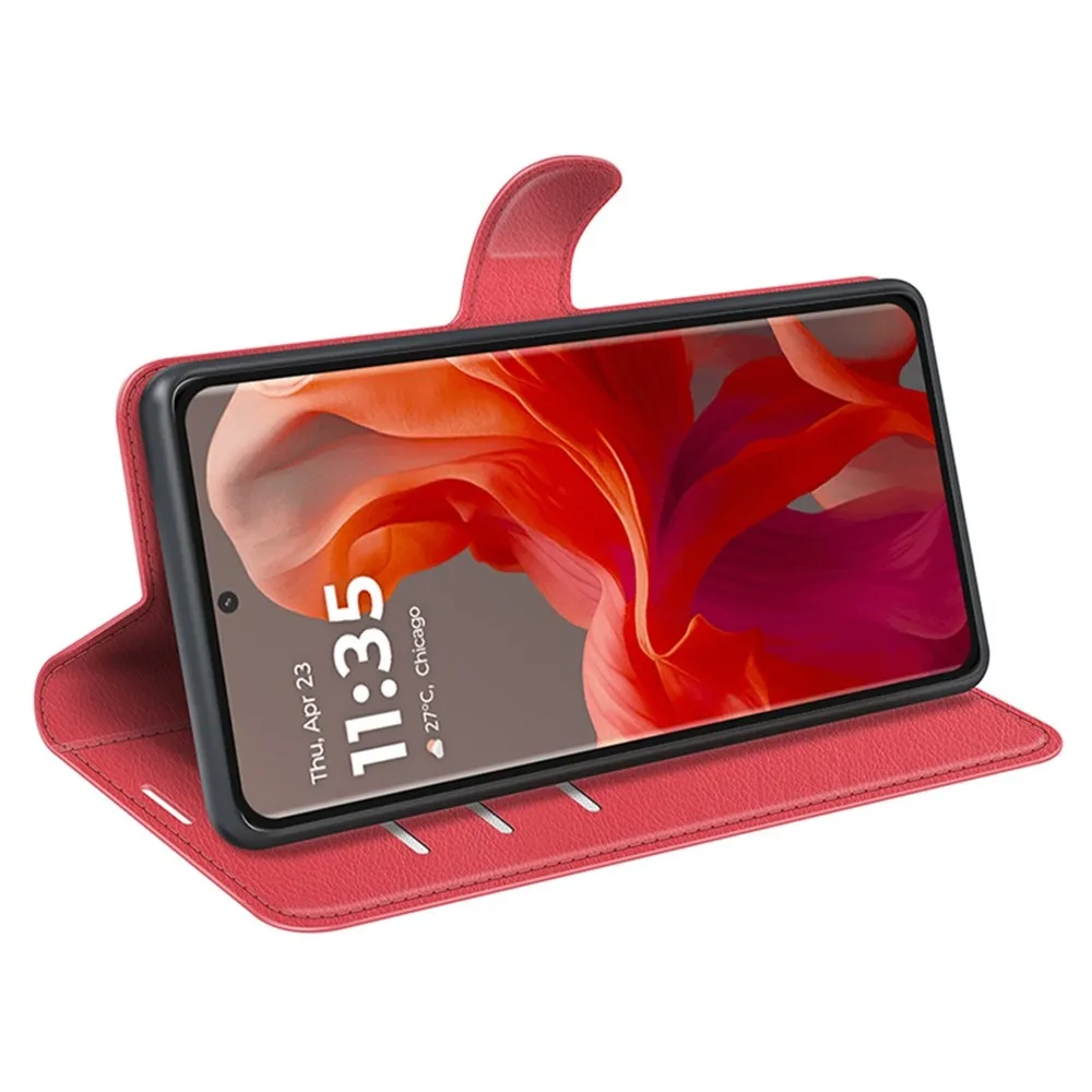 Červené peňaženkové puzdro Litchi na mobil Motorola Moto G85 5G