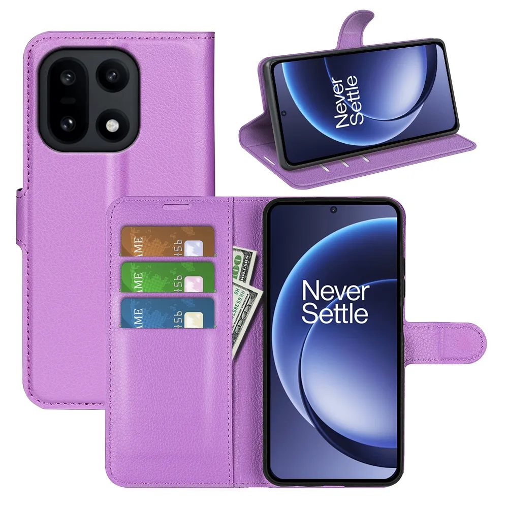 Litchi knižkové puzdro na OnePlus 15 5G - fialové