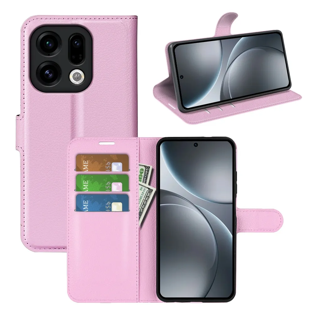 Litchi knižkové puzdro na Oppo Find X9 5G - ružové