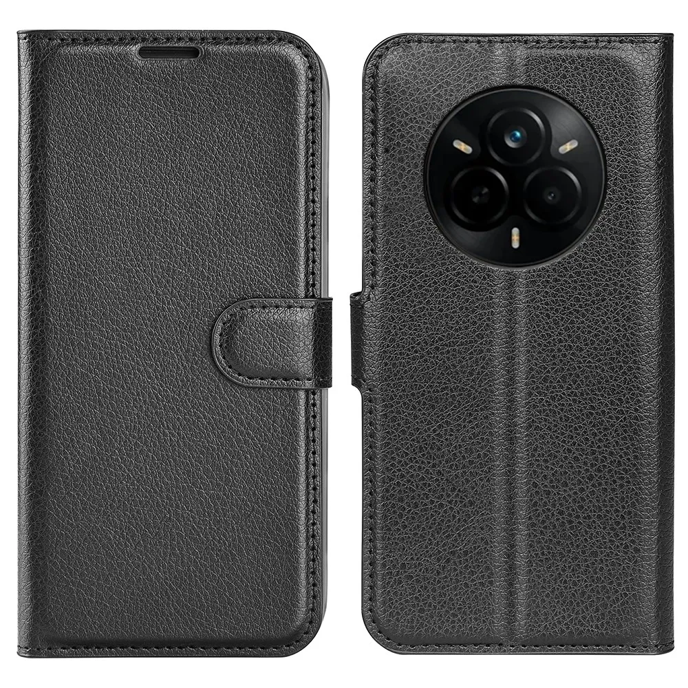 Čierne peňaženkové puzdro Litchi pre Realme 14 Pro+ 5G