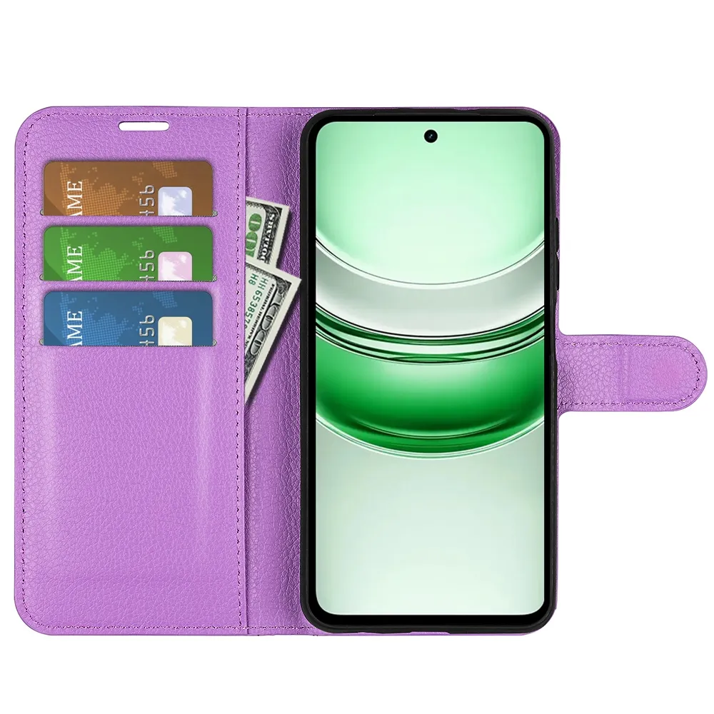 Fialové peňaženkové puzdro Litchi na mobil Realme C71