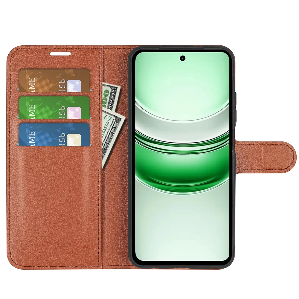 Hnedé peňaženkové puzdro Litchi na mobil Realme C71