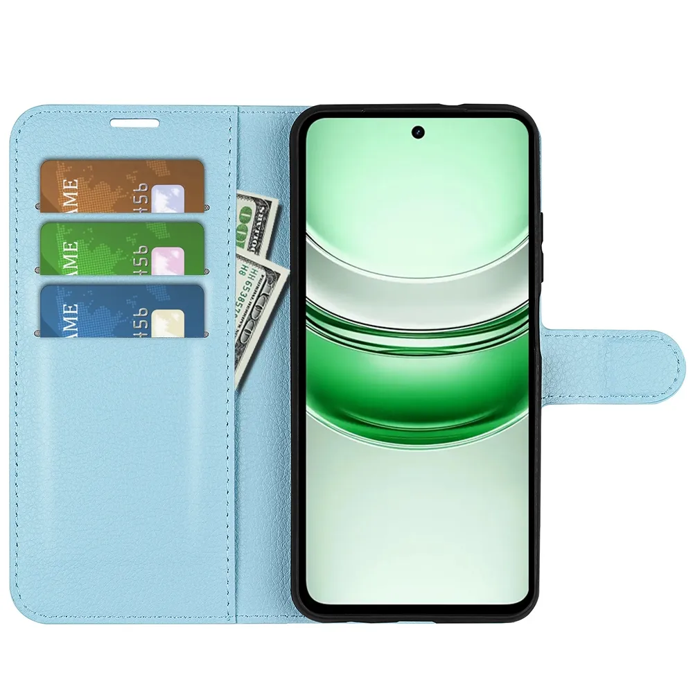 Modré peňaženkové puzdro Litchi na mobil Realme C71
