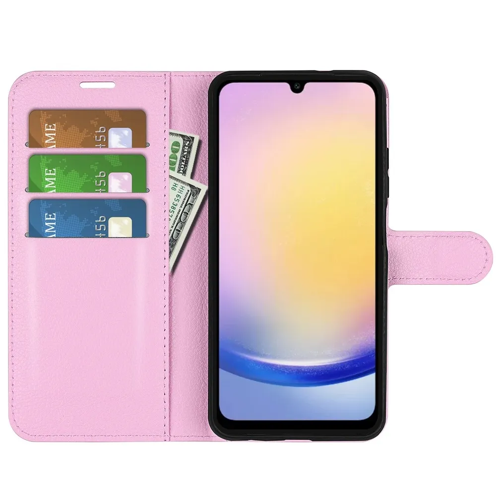 Ružové peňaženkové puzdro Litchi na mobil Samsung Galaxy A26 5G