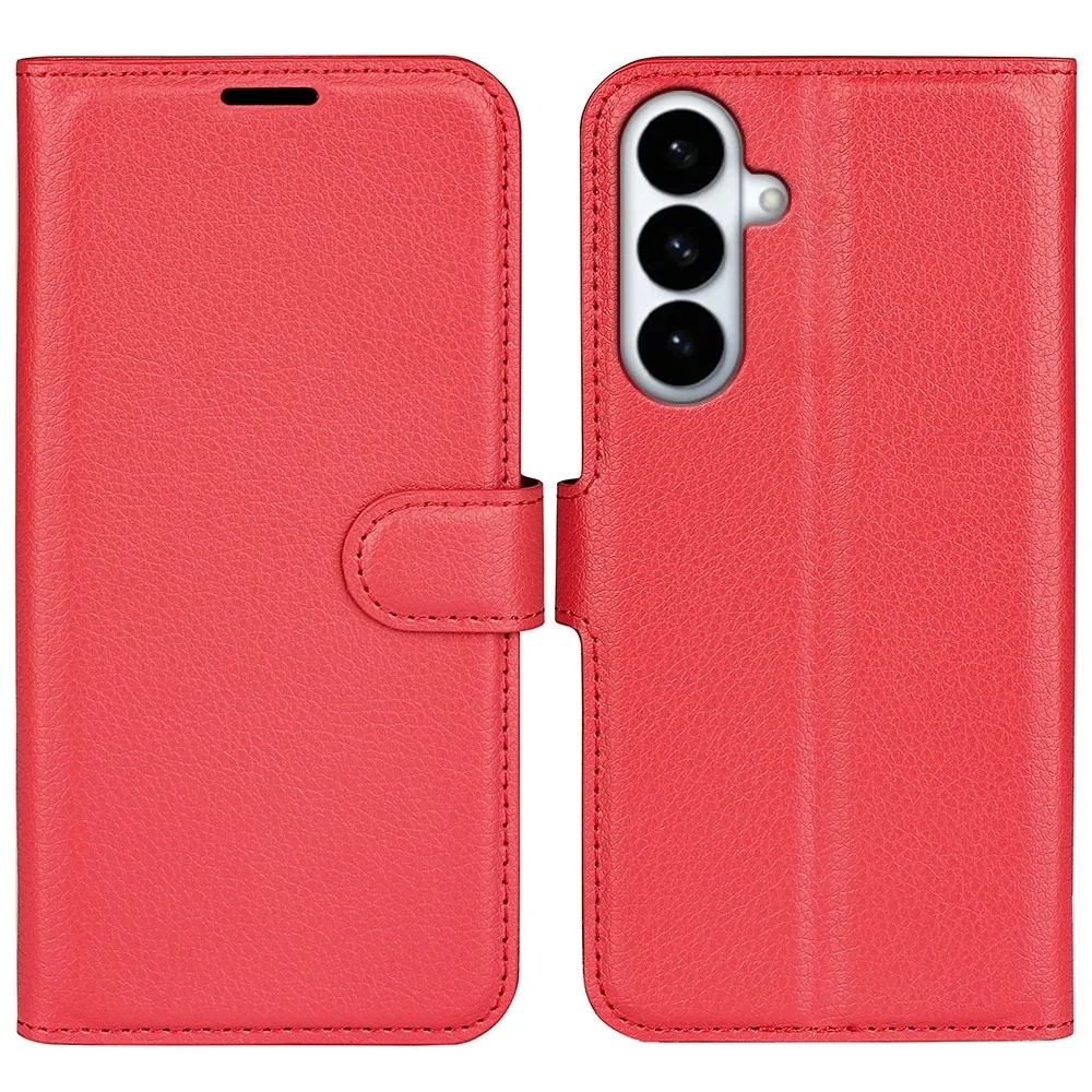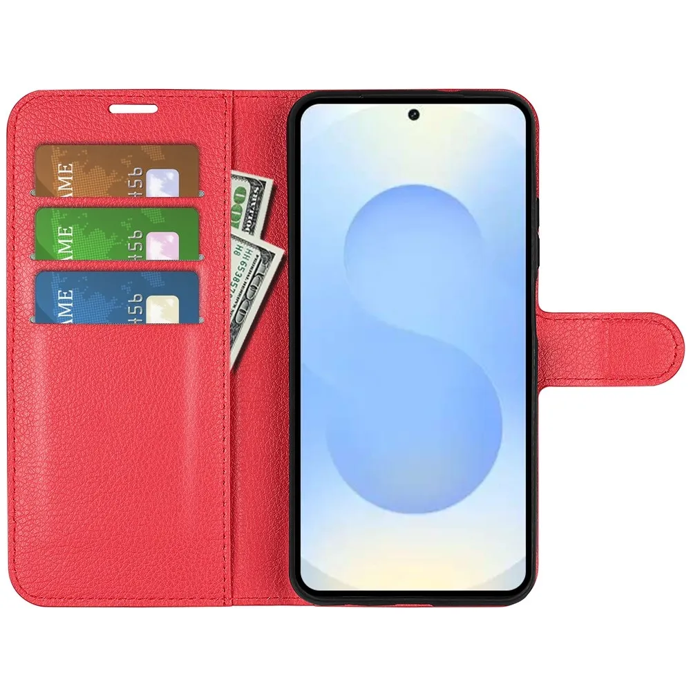 Červené peňaženkové puzdro Litchi na mobil Samsung Galaxy S26+