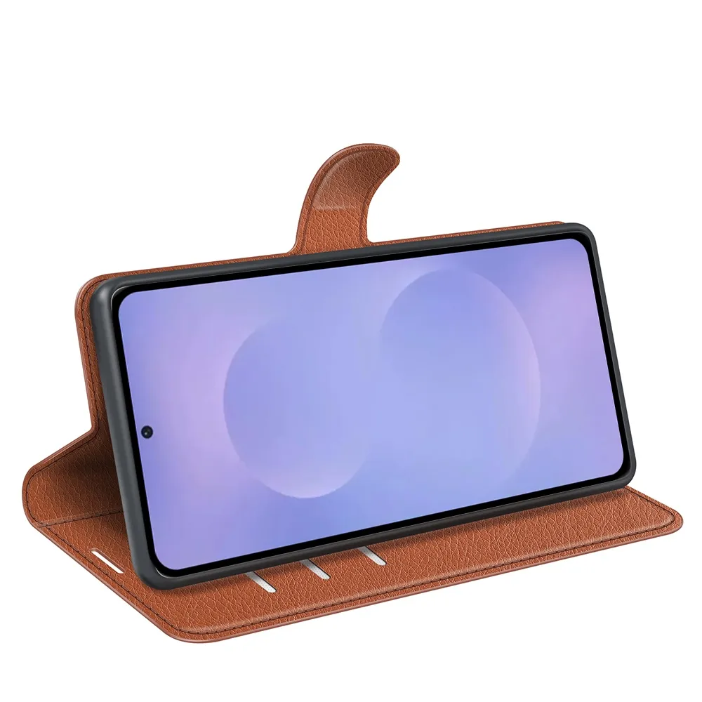 Hnedé peňaženkové puzdro Litchi na mobil Samsung Galaxy S26/S26 Pro