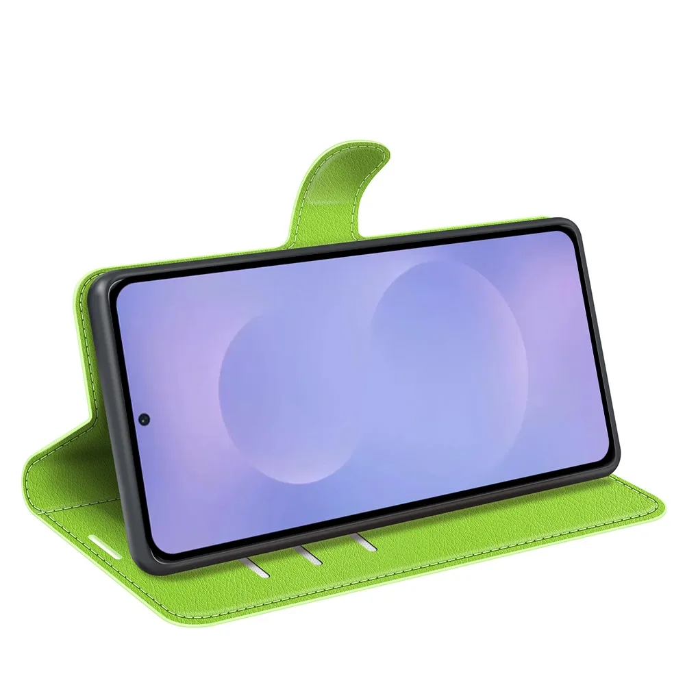 Zelené peňaženkové puzdro Litchi na mobil Samsung Galaxy S26/S26 Pro