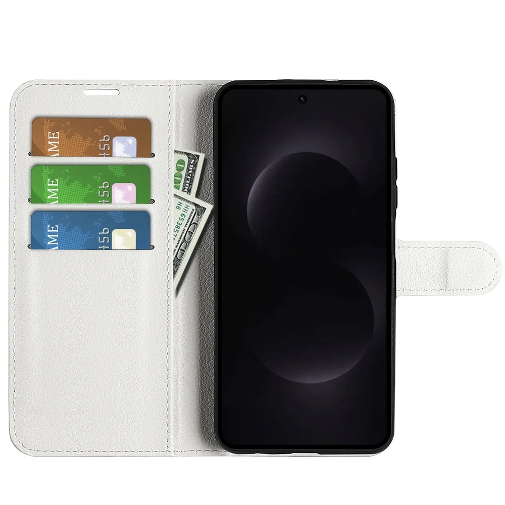 Biele peňaženkové puzdro Litchi na mobil Samsung Galaxy S26 Ultra