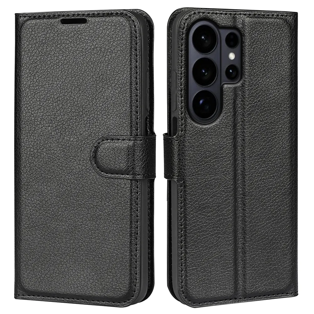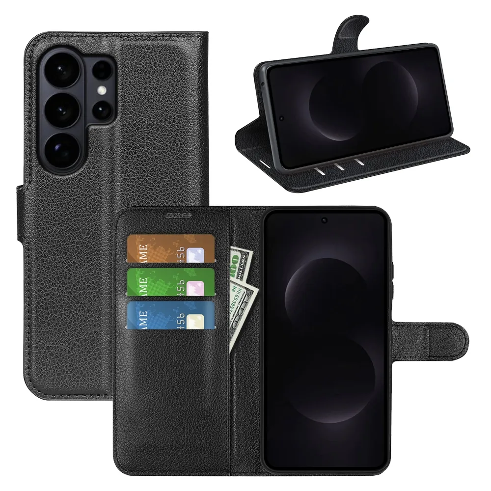 Čierne peňaženkové puzdro Litchi na mobil Samsung Galaxy S26 Ultra