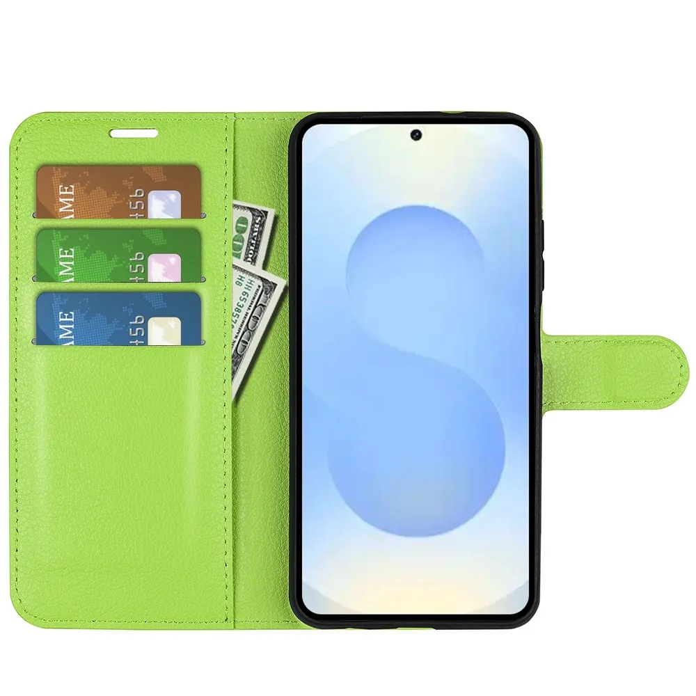 Zelené peňaženkové puzdro Litchi na mobil Samsung Galaxy S26+