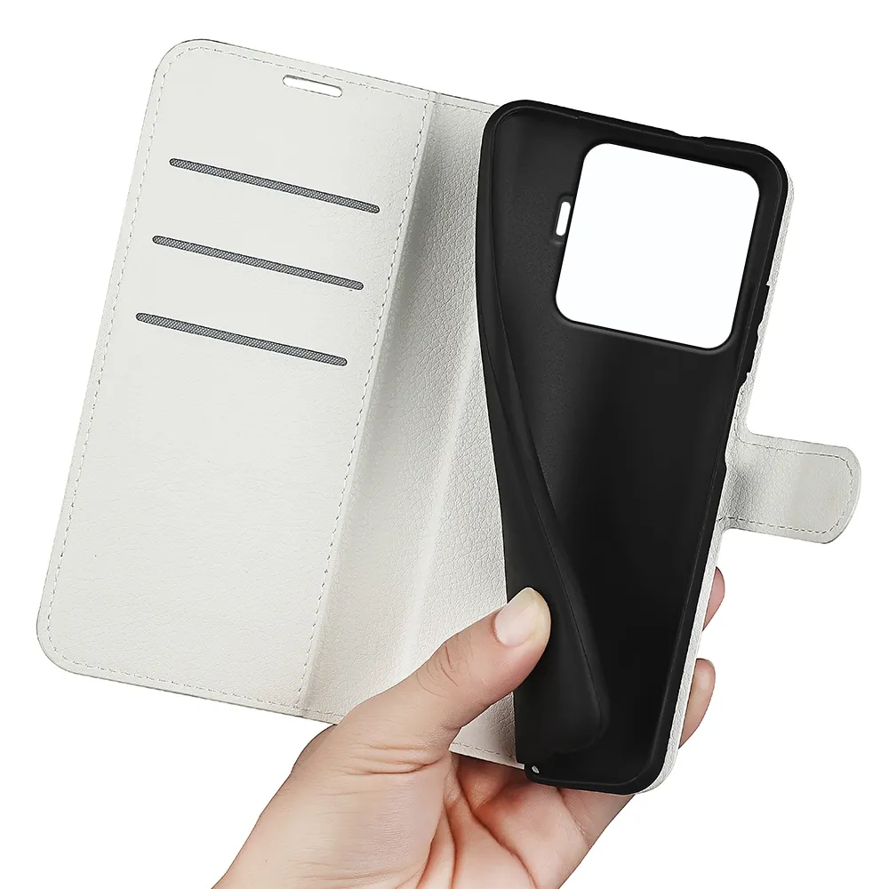 Biele peňaženkové puzdro Litchi na mobil Xiaomi 15T Pro