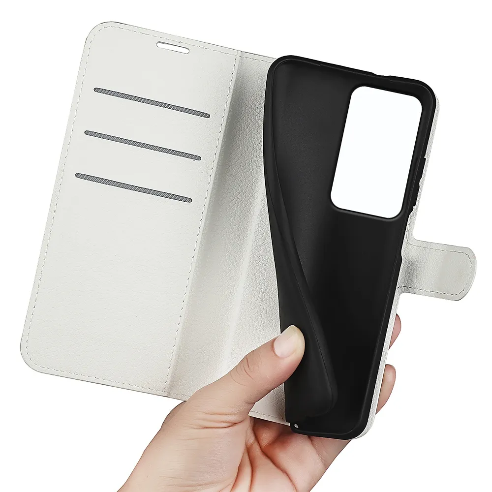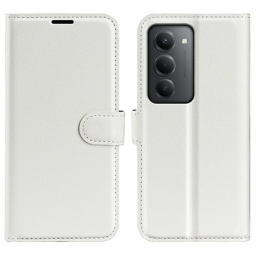 Biele peňaženkové puzdro Litchi na mobil Xiaomi Redmi 15 4G/5G (171mm)