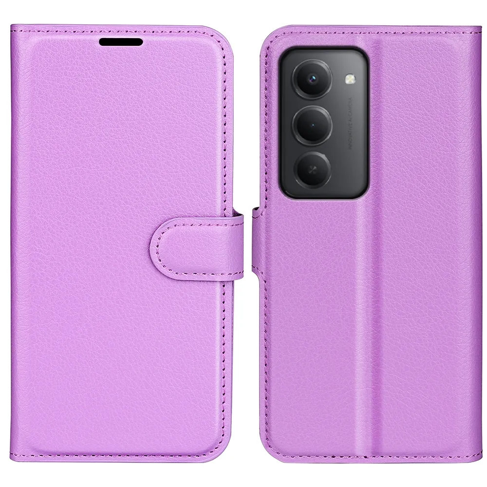 Fialové peňaženkové puzdro Litchi na mobil Xiaomi Redmi 15 4G/5G (171mm)