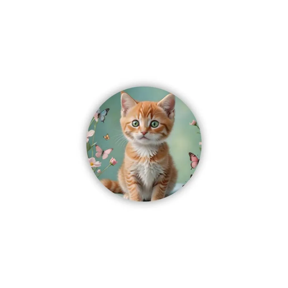 Magnetka s motívom mačiatka v záhrade motýľov prináša do priestoru nádych radosti a osobitosti. Vynikne svojím živým spracovaním, ktoré krásne zachytáva charakter aj energiu zvoleného motívu. Skvele sa hodí na chladničku, tabuľu alebo iný kovový povrch, kde sa stane malým, no milým detailom domova. Vďaka kvalitnej tlači si zachová sýte farby a jemné línie aj pri častom používaní.