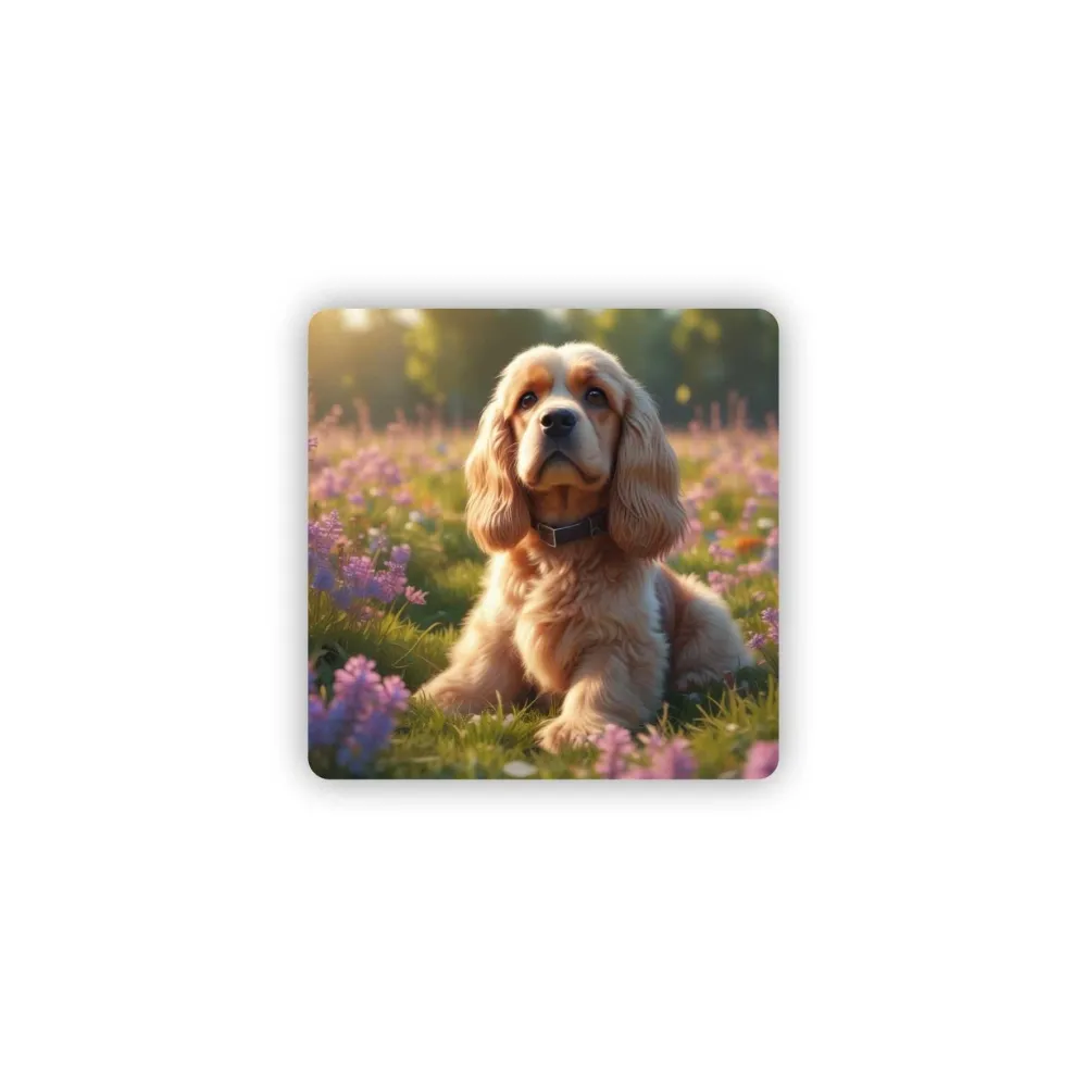 Magnetka s motívom kokeršpaniela v kvetinách prináša do priestoru nádych radosti a osobitosti. Vynikne svojím živým spracovaním, ktoré krásne zachytáva charakter aj energiu zvoleného motívu. Skvele sa hodí na chladničku, tabuľu alebo iný kovový povrch, kde sa stane malým, no milým detailom domova. Vďaka kvalitnej tlači si zachová sýte farby a jemné línie aj pri častom používaní.
