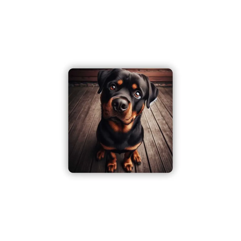 Magnetka s motívom roztomilého rotvajlera prináša do priestoru nádych radosti a osobitosti. Vynikne svojím živým spracovaním, ktoré krásne zachytáva charakter aj energiu zvoleného motívu. Skvele sa hodí na chladničku, tabuľu alebo iný kovový povrch, kde sa stane malým, no milým detailom domova. Vďaka kvalitnej tlači si zachová sýte farby a jemné línie aj pri častom používaní.