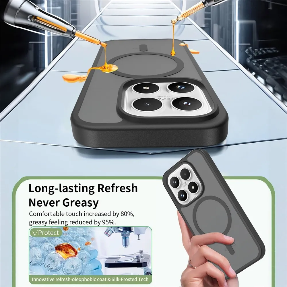 Matte gélový obal s pevným chrbtom a MagSafe na Xiaomi 17 - čierny