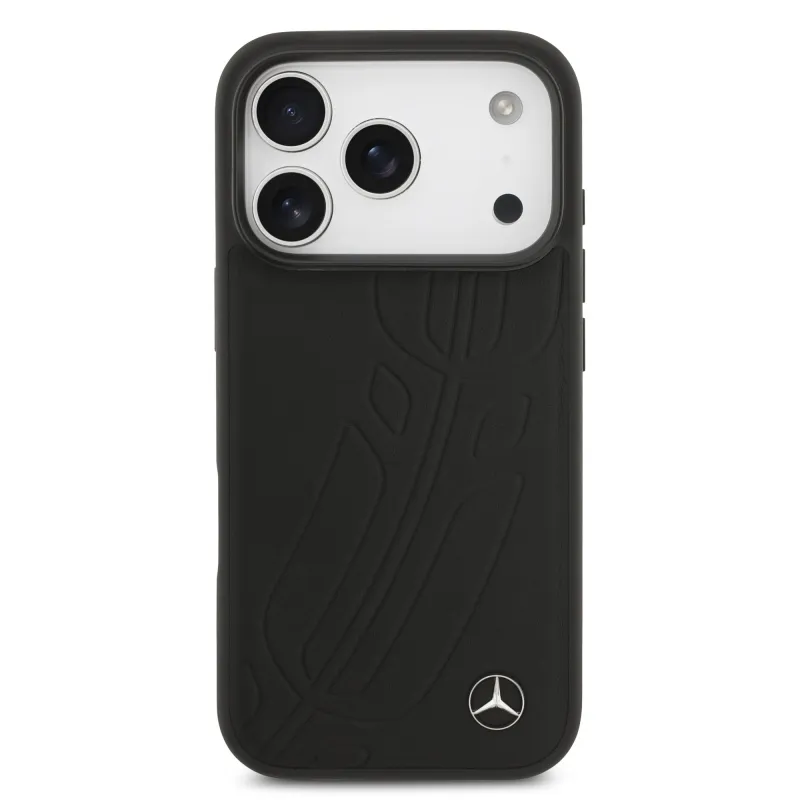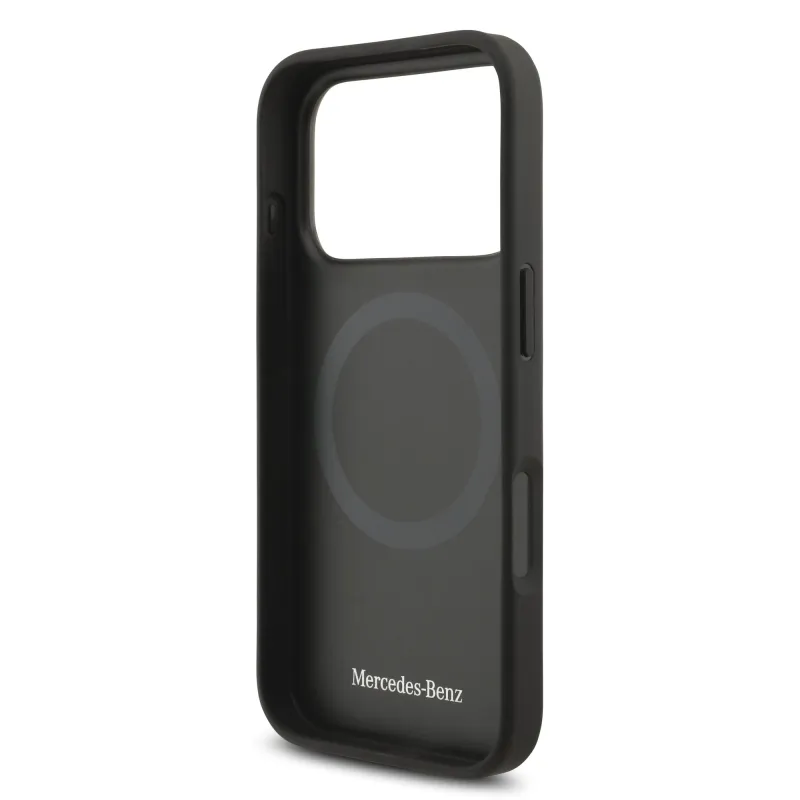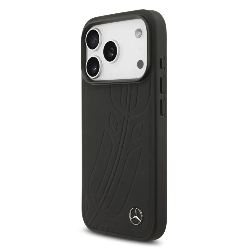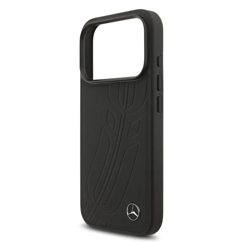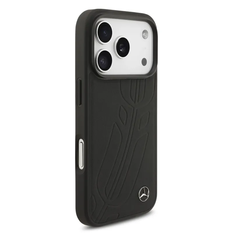 Mercedes Kožený veľký zadný kryt Lauer Leaves MagSafe pre iPhone 17 Pro Black