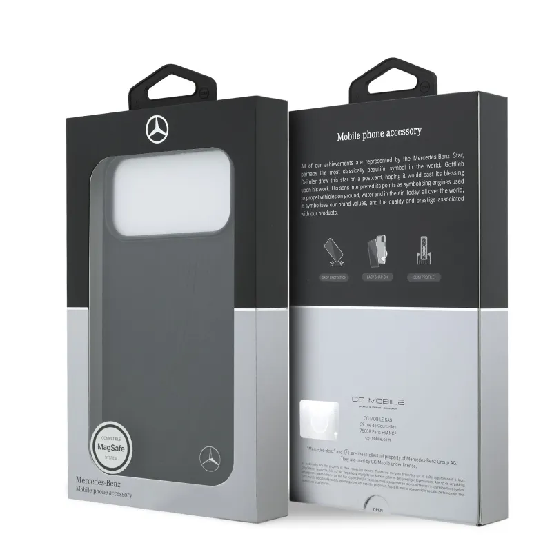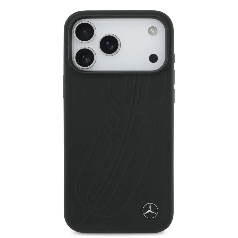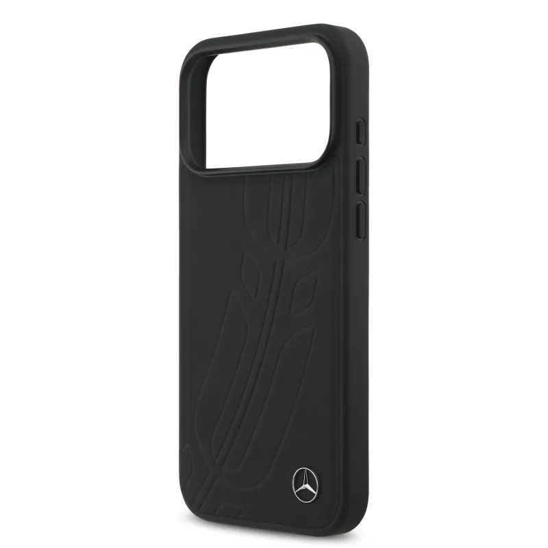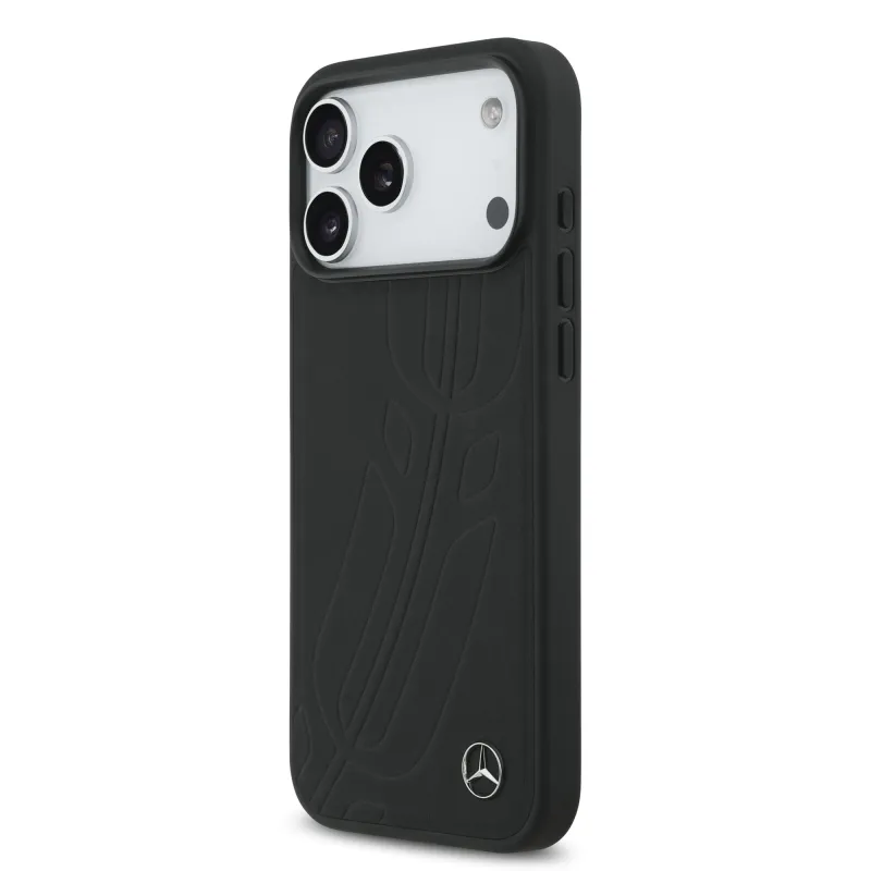 Mercedes Kožený veľký zadný kryt Lauer Leaves MagSafe pre iPhone 17 Pro Max Black