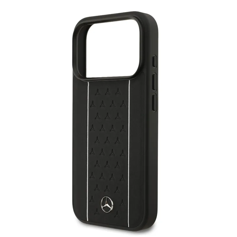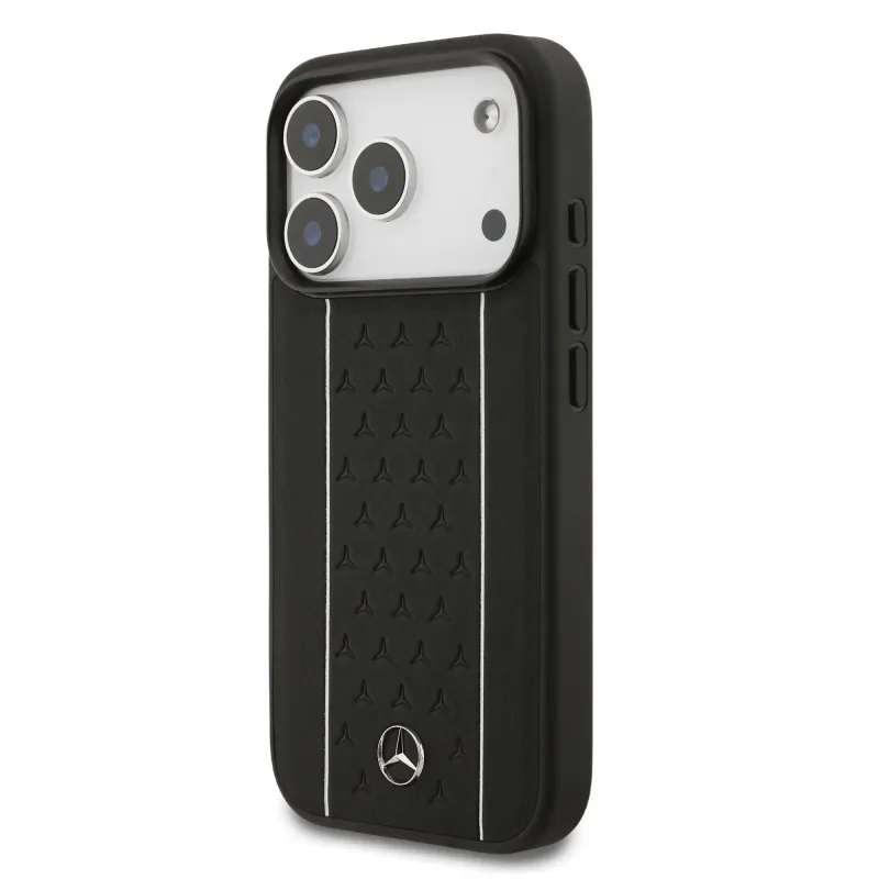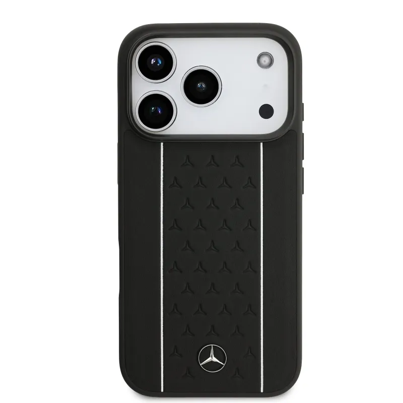 Mercedes Kožený zadný kryt MagSafe so vzorom hviezd a pruhov pre iPhone 17 Pro Black/White
