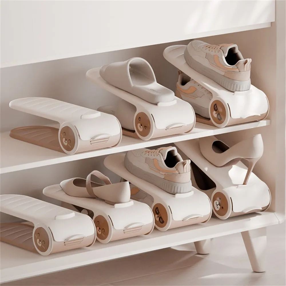 Nastaviteľný dvojvrstvový organizér na topánky z PP plastu je praktické riešenie pre prehľadné a úsporné usporiadanie obuvi v botníku, skrini alebo predsieni. Vďaka dvojposchodovému prevedeniu umožňuje uložiť jeden pár topánok nad druhý a výrazne tak šetrí miesto.