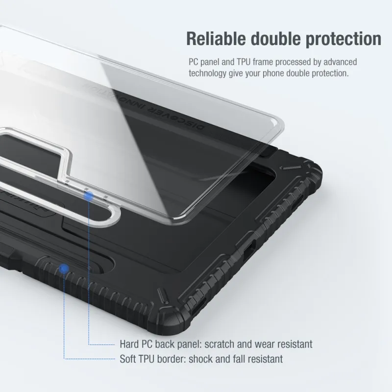 Nillkin Bumper Pro ochranné pouzdro s praktickým flipem, který slouží zároveň jako stojánek je vyrobeno z vybraného materiálu TPU a PC.