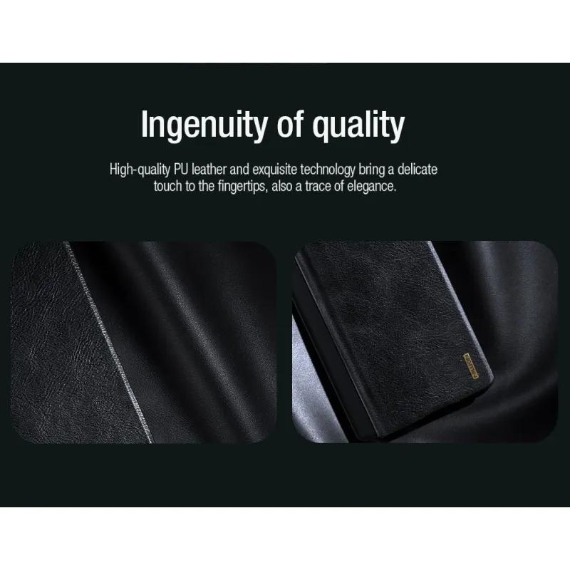 Nillkin QIN Book PRO pouzdro je vyrobeno z kvalitní PU kůže, otevírá se do boku jako knížka a navíc je oproti klasickému QIN Book vybaveno posuvným krytem čoček fotoaparátu.