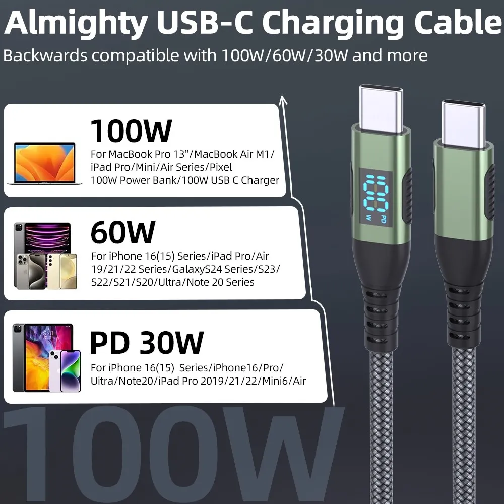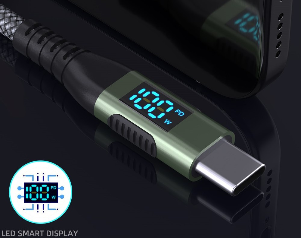 USB-C / USB-C kábel s displejom je navrhnutý na rýchle nabíjanie aj spoľahlivý prenos dát pri moderných zariadeniach. Podporuje výkon až 100 W (5A/20V), takže bez problémov zvládne napájať nielen telefóny a tablety, ale aj notebooky.