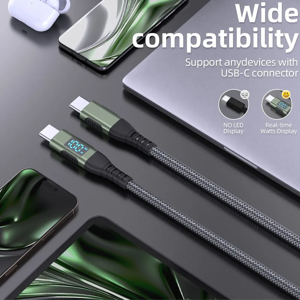 Integrovaný digitálny displej zobrazuje aktuálny výkon nabíjania v reálnom čase, čo umožňuje lepšiu kontrolu nad procesom nabíjania. Kábel podporuje technológie PD, QC, AFC a FCP, ktoré zaisťujú rýchle a efektívne doplnenie energie.