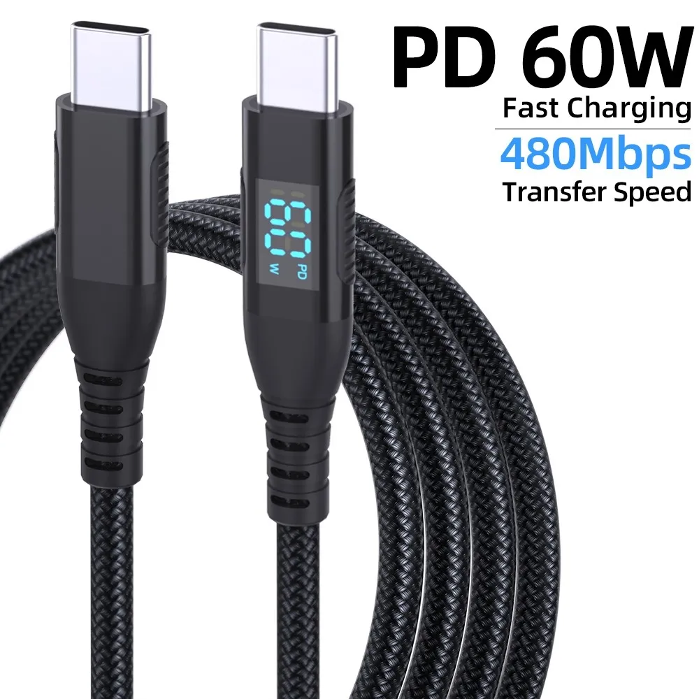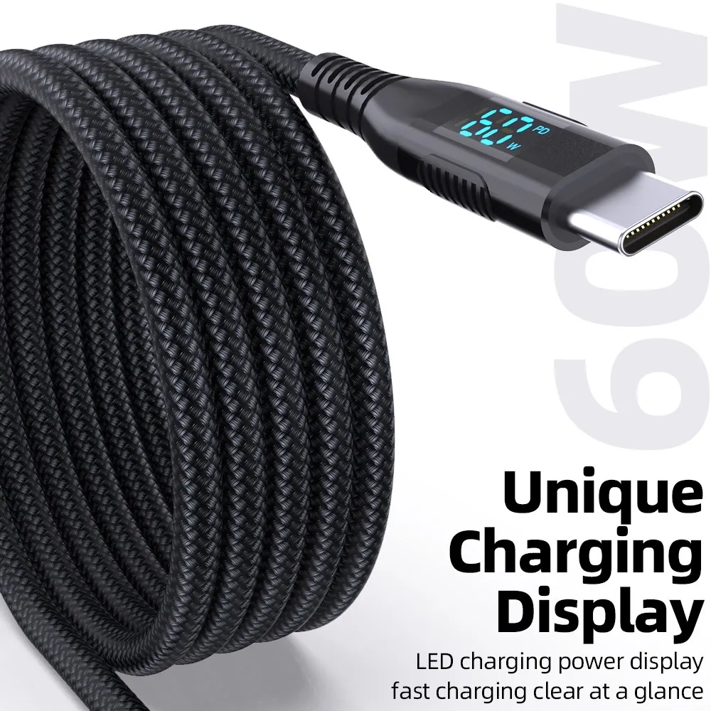 3m USB-C na USB-C kábel s displejom 60W rýchle nabíjanie nylonový je spoľahlivý kábel na rýchle nabíjanie aj prenos dát pri moderných zariadeniach. Podporuje výkon až 60 W (3A/20V), takže je ideálny pre smartfóny, tablety aj ďalšie kompatibilné zariadenia.