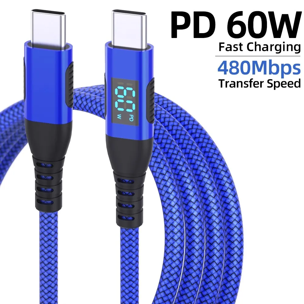 3m USB-C na USB-C kábel s displejom 60W rýchle nabíjanie nylonový je spoľahlivý kábel na rýchle nabíjanie aj prenos dát pri moderných zariadeniach. Podporuje výkon až 60 W (3A/20V), takže je ideálny pre smartfóny, tablety aj ďalšie kompatibilné zariadenia.