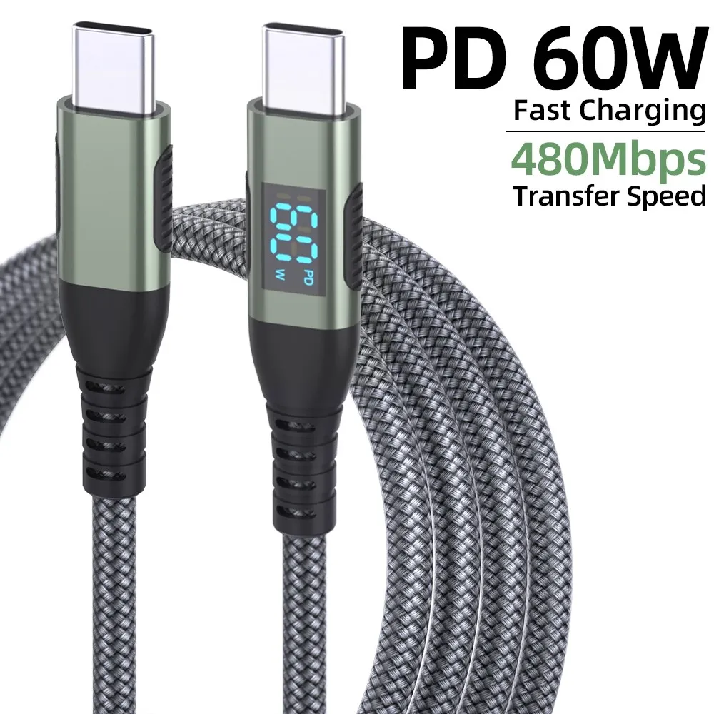 3m USB-C na USB-C kábel s displejom 60W rýchle nabíjanie nylonový je spoľahlivý kábel na rýchle nabíjanie aj prenos dát pri moderných zariadeniach. Podporuje výkon až 60 W (3A/20V), takže je ideálny pre smartfóny, tablety aj ďalšie kompatibilné zariadenia.