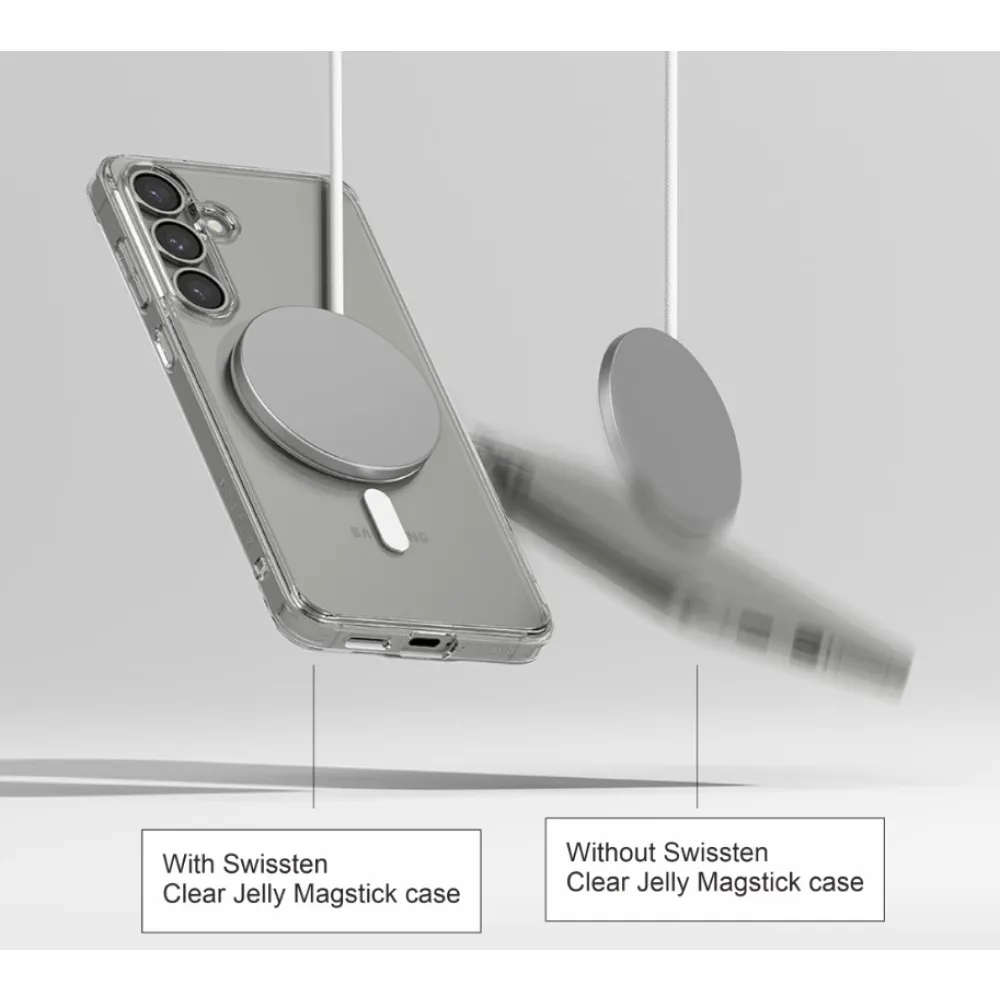 SWISSTEN MagStick CLEAR JELLY CASE na mobil Samsung Galaxy S26 je elegantné ochranné puzdro s integrovaným MagSafe krúžkom, ktoré zachováva dizajn vášho telefónu a zároveň poskytuje spoľahlivú ochranu proti poškriabaniu, nárazom a nečistotám. Puzdro je vyrobené z pružného a odolného TPU materiálu, ktorý sa dokonale prispôsobí vášmu zariadeniu. Vďaka priehľadnému prevedeniu zostáva originálny vzhľad telefónu plne viditeľný. Výhody SWISSTEN MagStick CLEAR JELLY CASE: