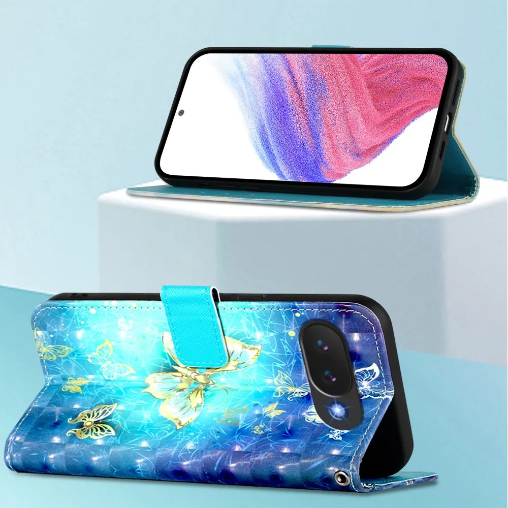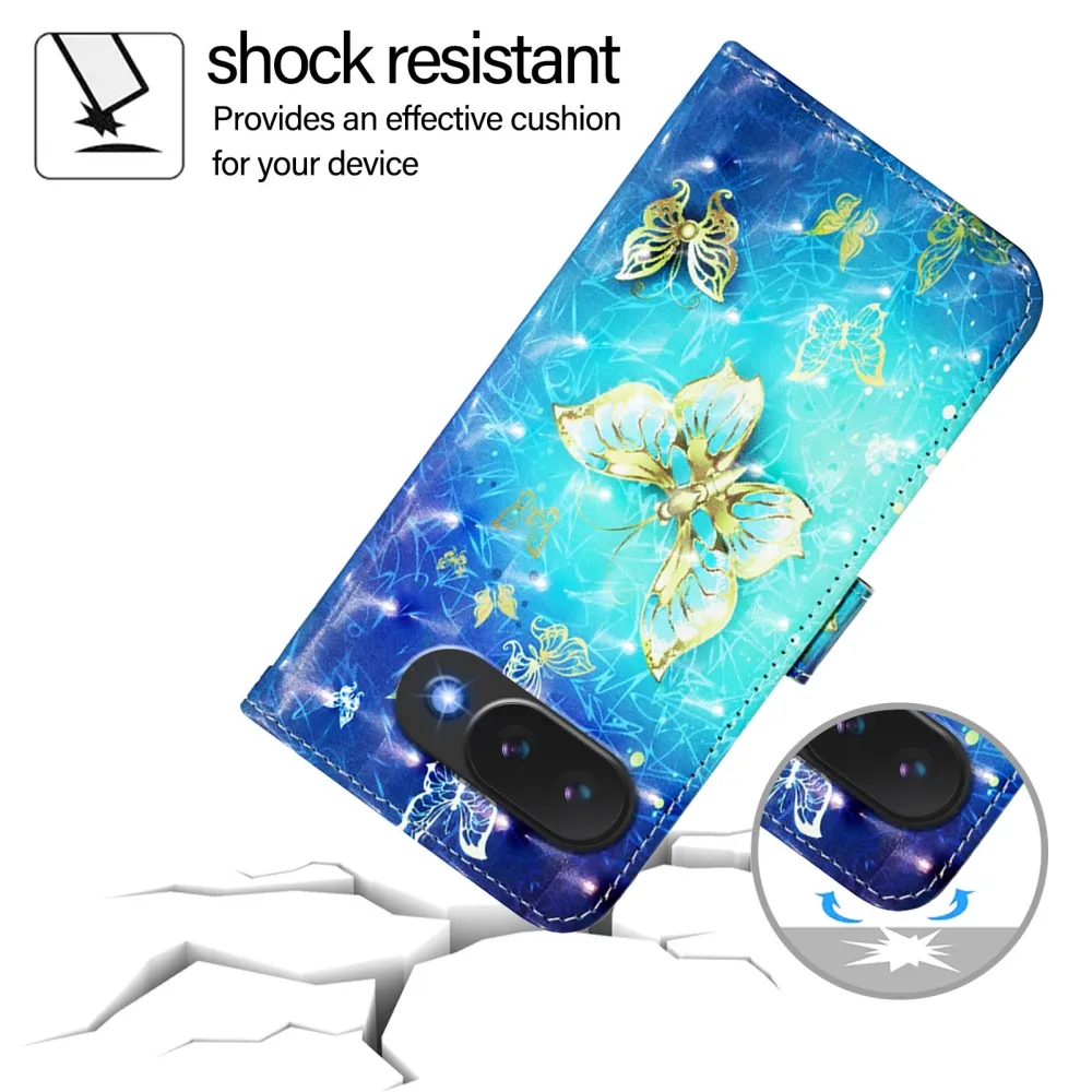 Patte knižkové púzdro na Google Pixel 10a - modrozlatí motýle