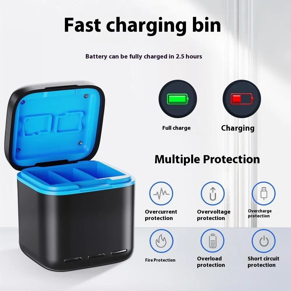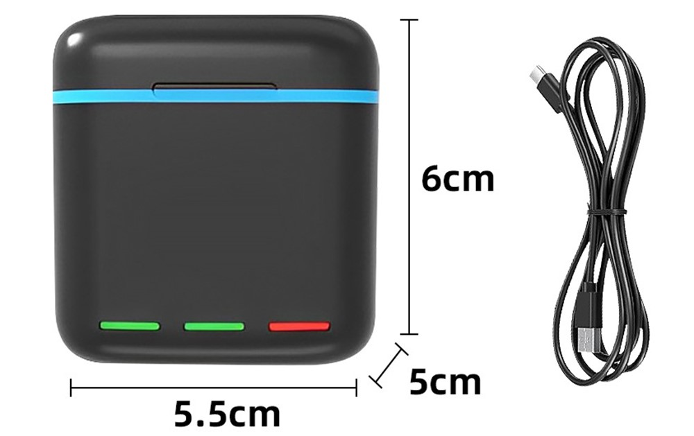 Puzdro je vyrobené z odolného ABS plastu, ktorý poskytuje pevnosť a dlhú životnosť. Integrovaný nabíjací systém umožňuje plné nabitie batérií približne za 2,5 hodiny, čo oceníte pri intenzívnom natáčaní. Okrem batérií ponúka aj priestor na uloženie 2 TF kariet, takže máte všetko potrebné prehľadne na jednom mieste.