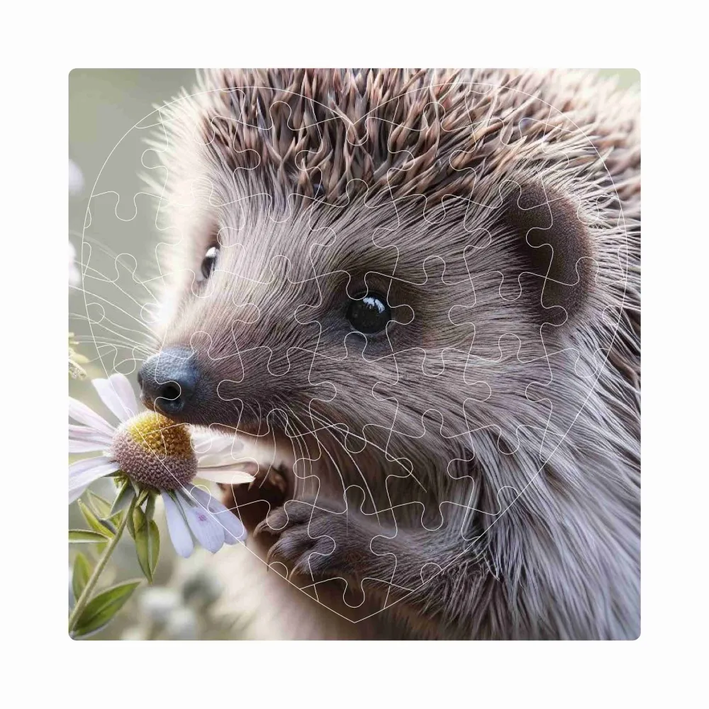 Kvalitné puzzle 19x18cm v tvare srdca (76 dielikov) a obrázok ježko