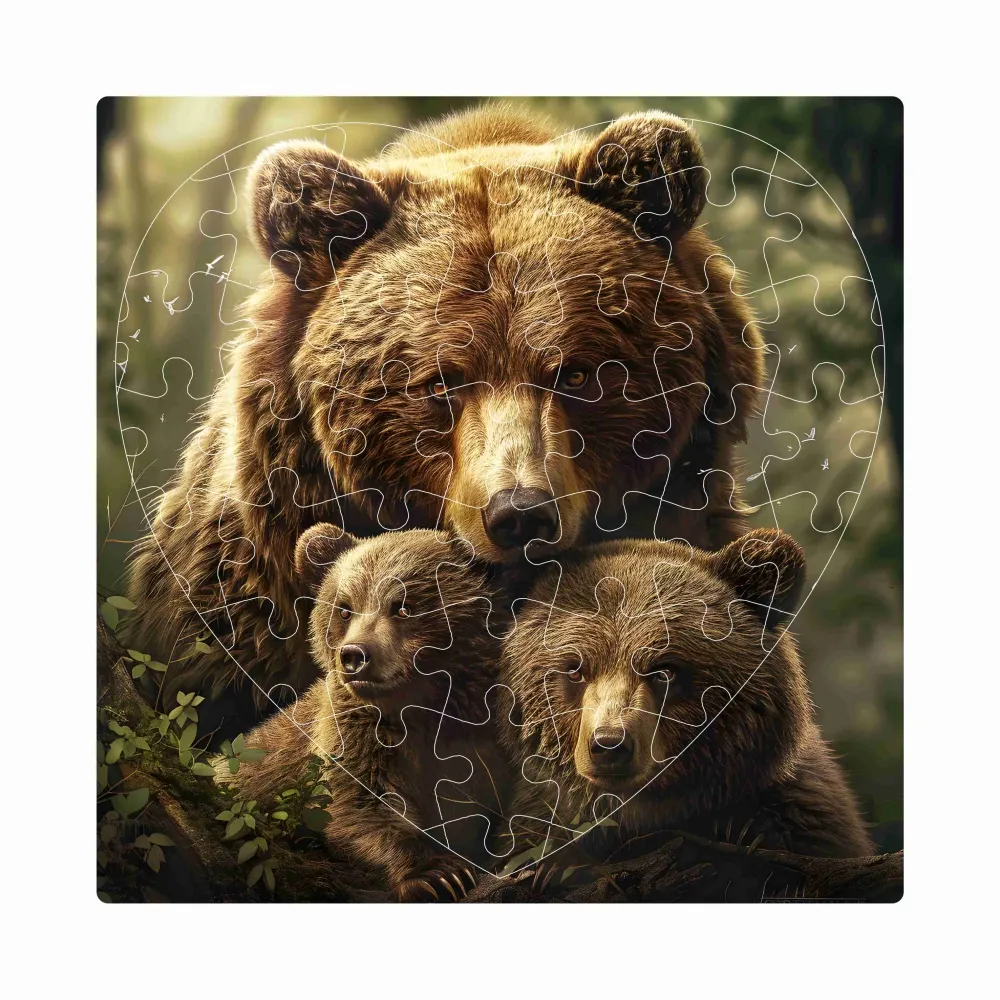 Puzzle 19x18cm v tvare srdca (76 dielikov) s obrázkom - medvedica s mláďatami