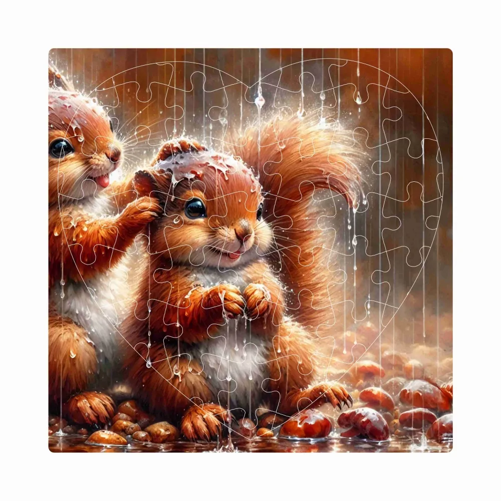 Puzzle 19x18cm v tvare srdca (76 dielikov) s obrázkom - veveričky