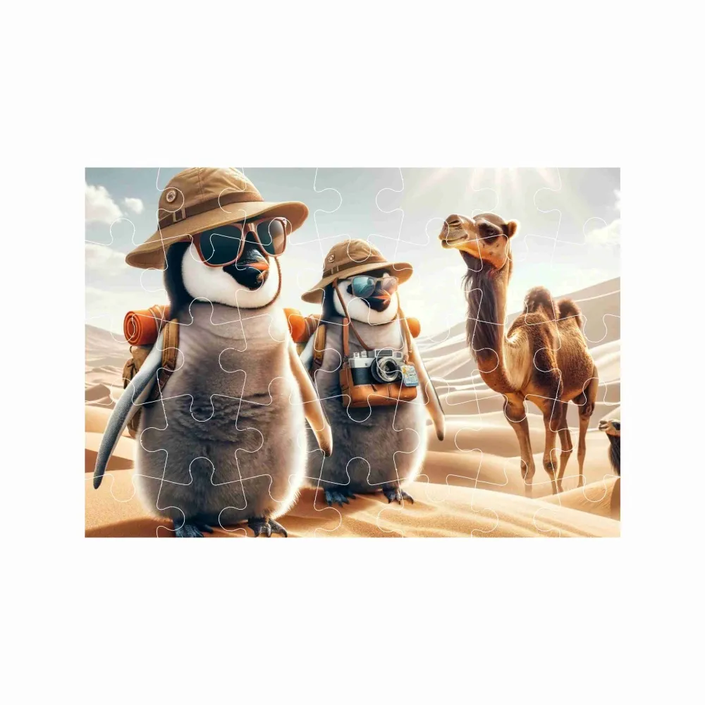 Originálne puzzle formátu A4 29x20cm (40 dielikov) prináša radosť z tvorenia a krásy a prináša radosť z tvorenia a krás. Po zložení sa objaví veselý motív tučniaky na púšti, ktorá rozžiari každú detskú izbu a prinesie veľa zábavy pri skladaní. Vďaka ideálnej veľkosti a zodpovedajúcemu počtu dielov sa hodí pre deti i dospelých, ktorí radi odpočívajú pri kreatívnej činnosti.