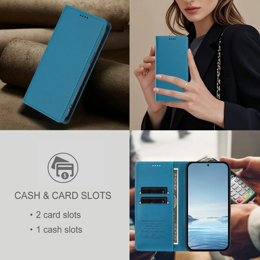 Svetlomodré peňaženkové puzdro RFIDS na mobil Realme GT 8 Pro 5G