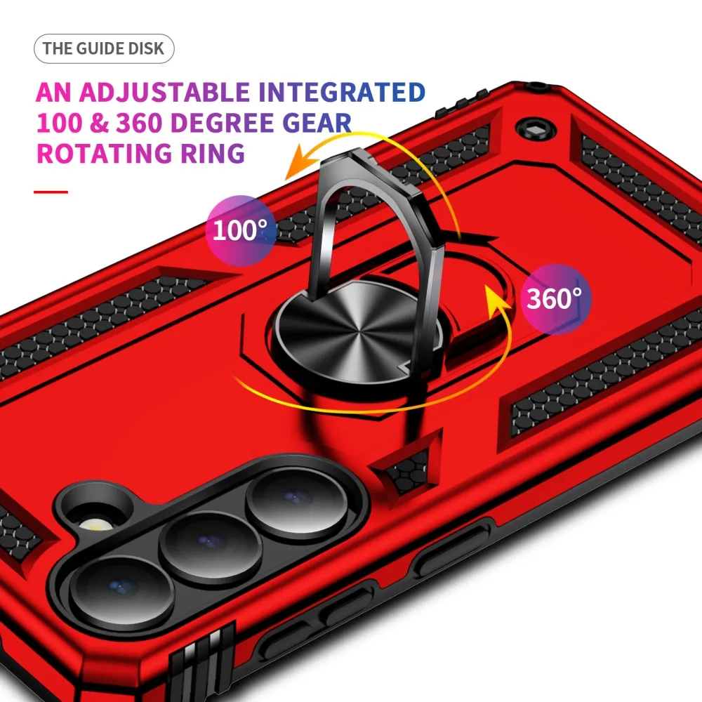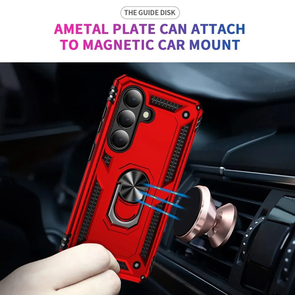 Ring odolný hybridný kryt s úchytom na prst na Samsung Galaxy S26 - červený