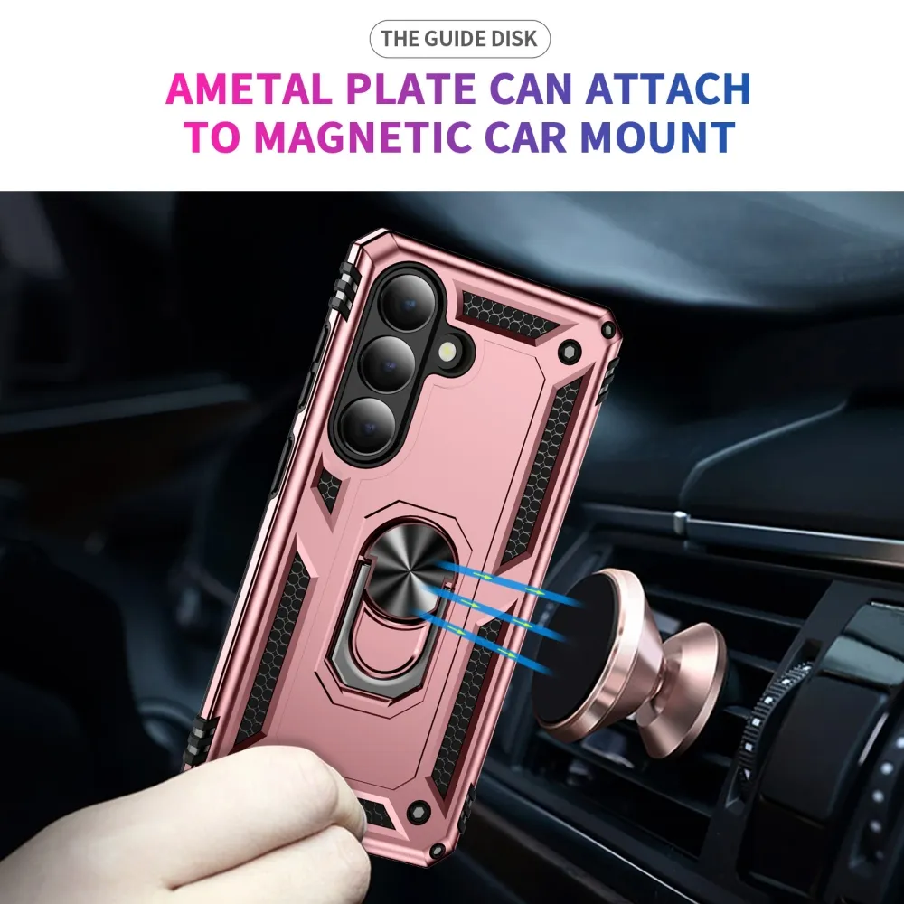 Ring odolný hybridný kryt s úchytom na prst na Samsung Galaxy S26 - ružovozlatý
