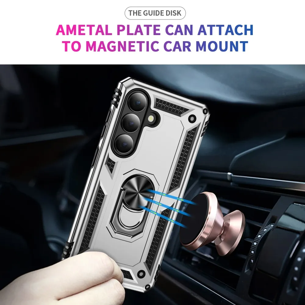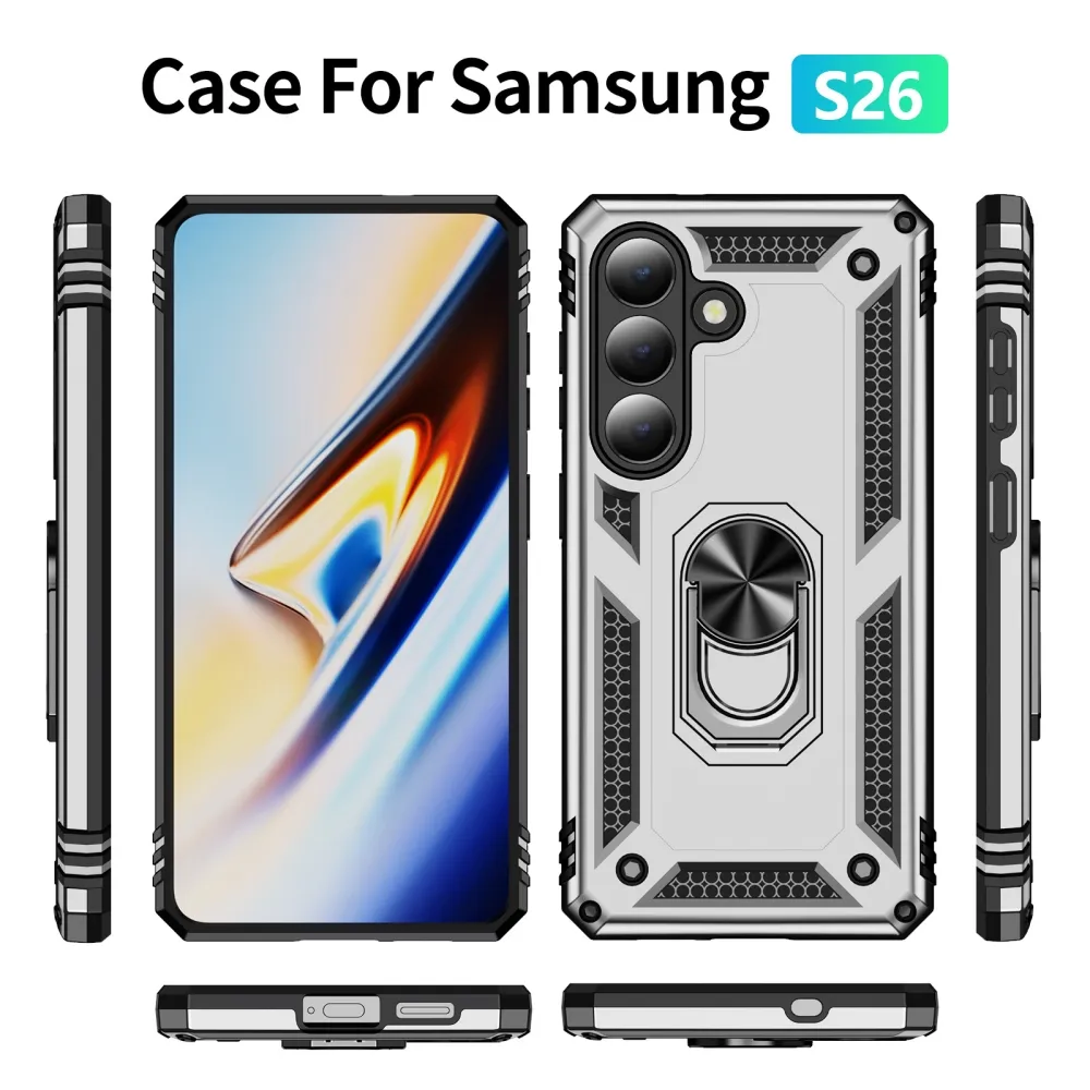 Ring odolný hybridný kryt s úchytom na prst na Samsung Galaxy S26 - strieborný
