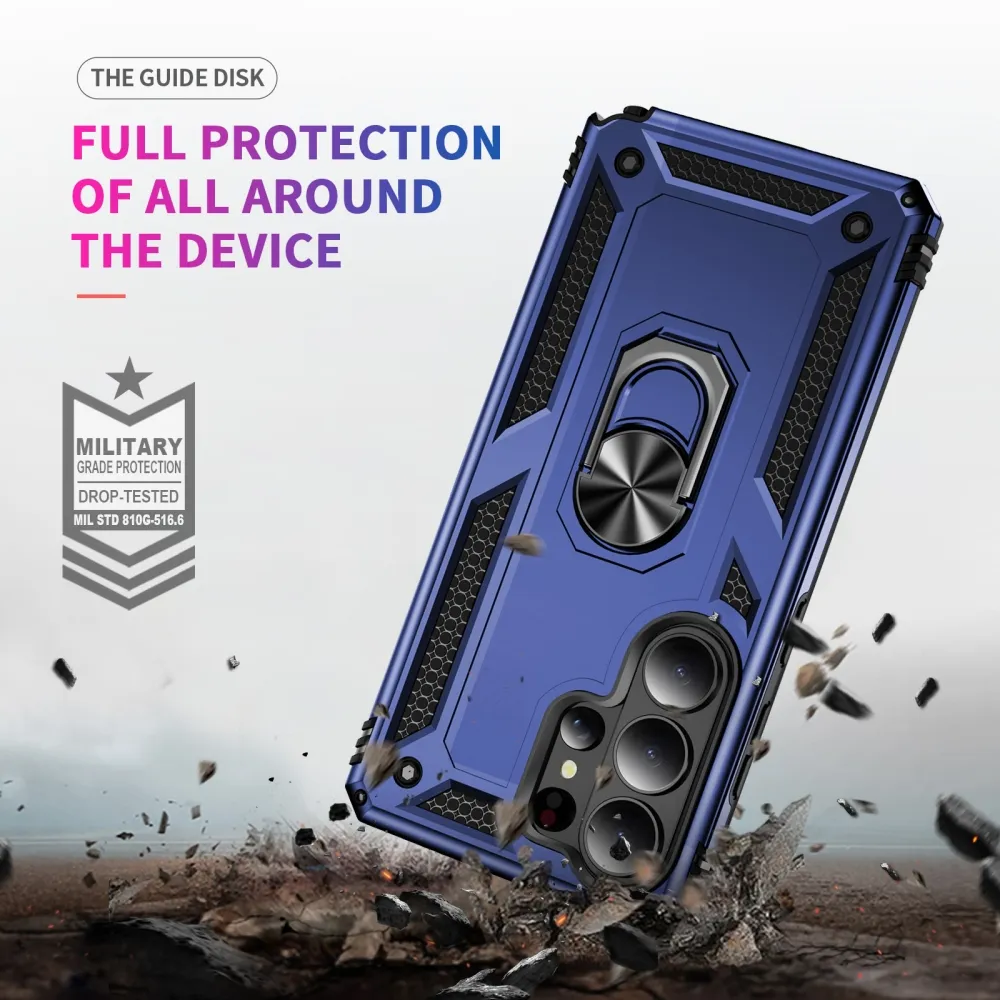 Modrý odolný hybridný obal s úchytom na prst na mobil Samsung Galaxy S26 Ultra