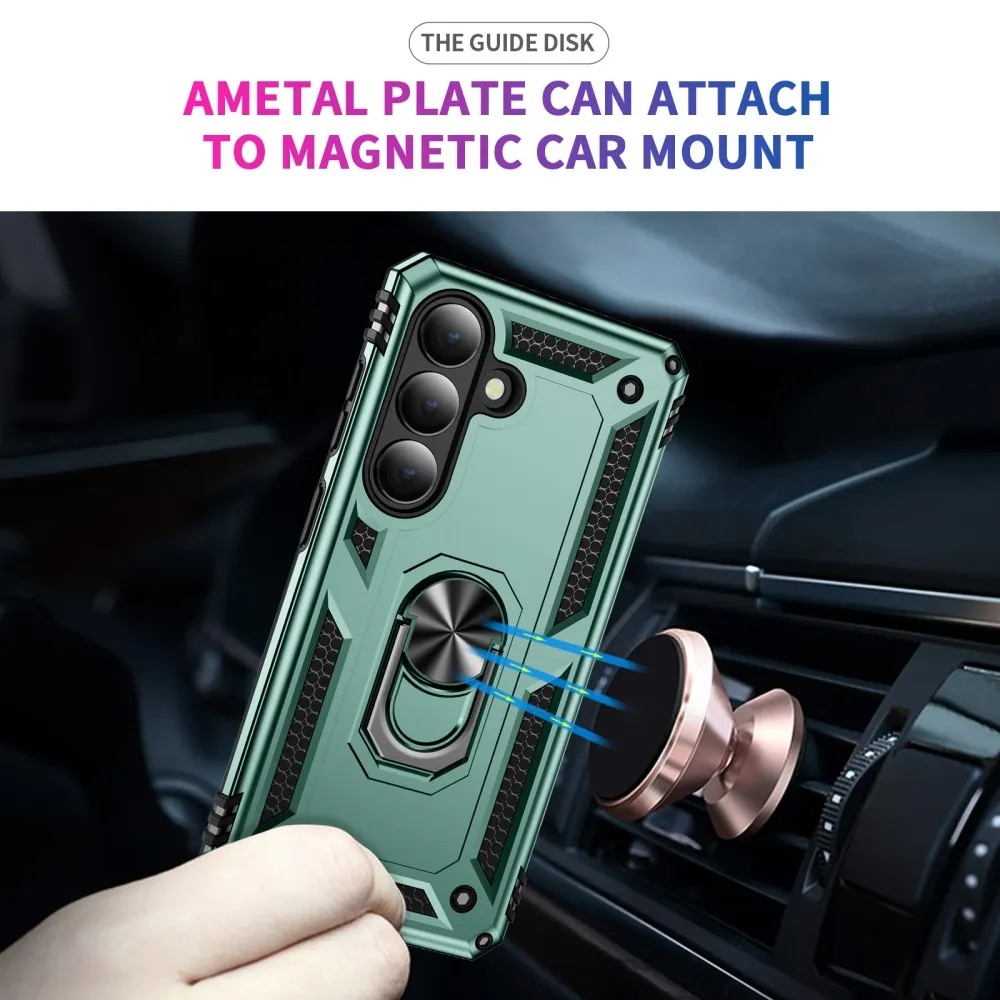 Ring odolný hybridný kryt s úchytom na prst na Samsung Galaxy S26 - zelený