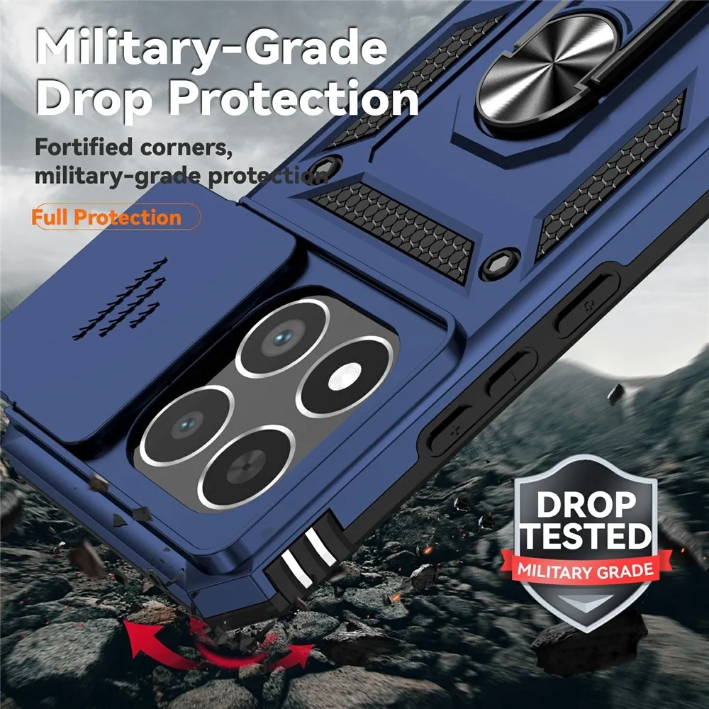 Modrý hybridný odolný obal Ring s úchytom na prst na mobil Xiaomi 15T